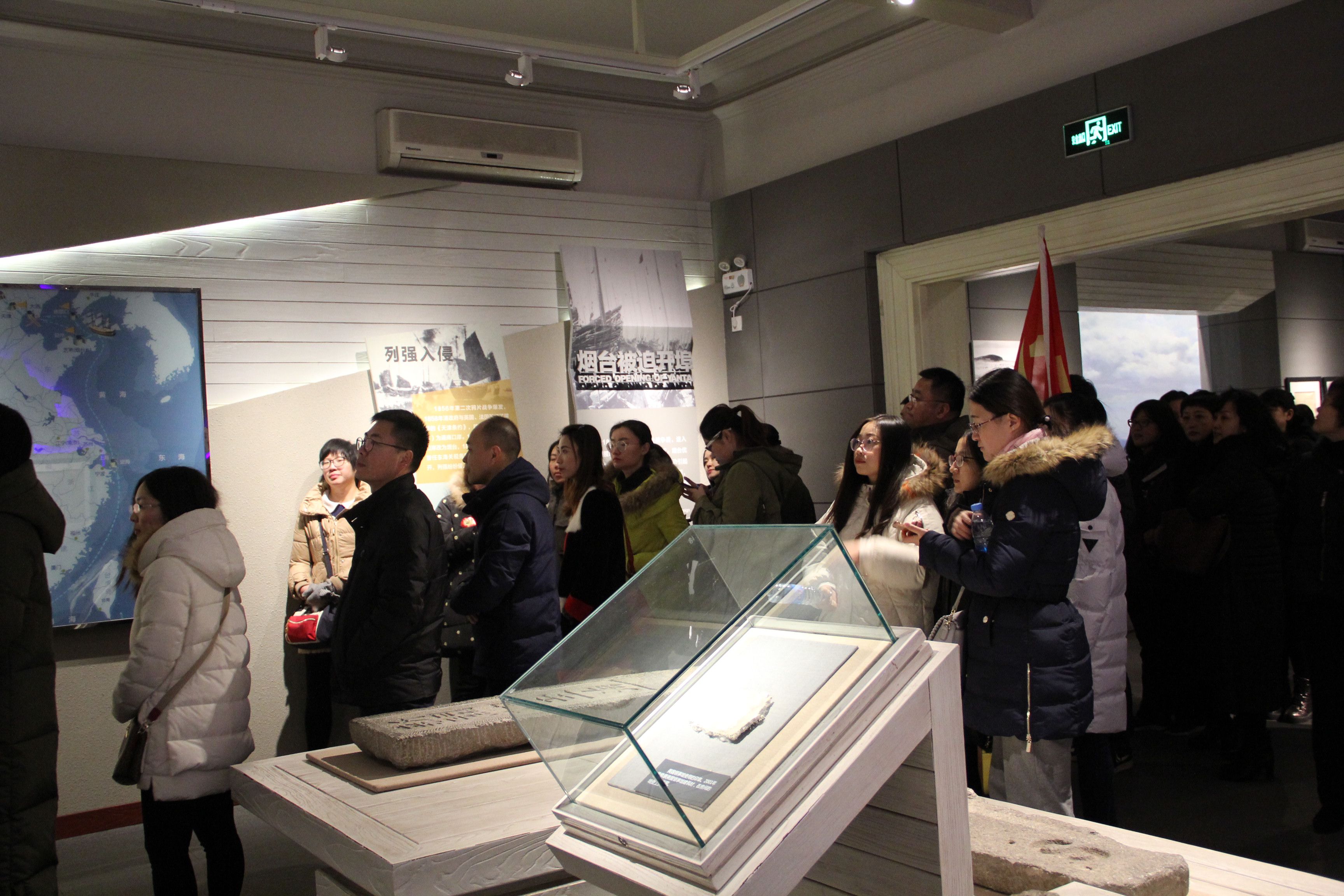 個單元,回顧了膠東人民在中國共產(chǎn)黨領(lǐng)導(dǎo)下,為了民族獨立和人民解放、國家富強和人民幸福,前赴后繼、奮勇前進的光輝歷程。通過聽取工作人員聲情并茂的講解,觀看記載歷史的視頻短片、文字、圖片和文物,大家被“忠誠堅定、不畏艱難、敢為人先、無私奉獻”的膠東革命精神深深的感染著。在煙臺開埠陳列館,通過實物資料、圖片資料、文字資料展示了從二次鴉片戰(zhàn)爭之后到辛亥革命前期,